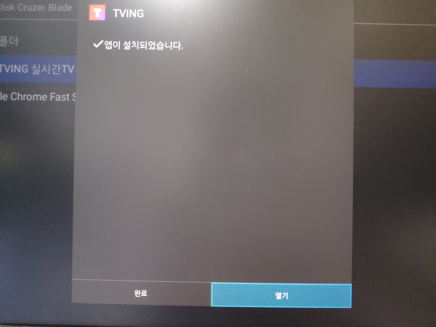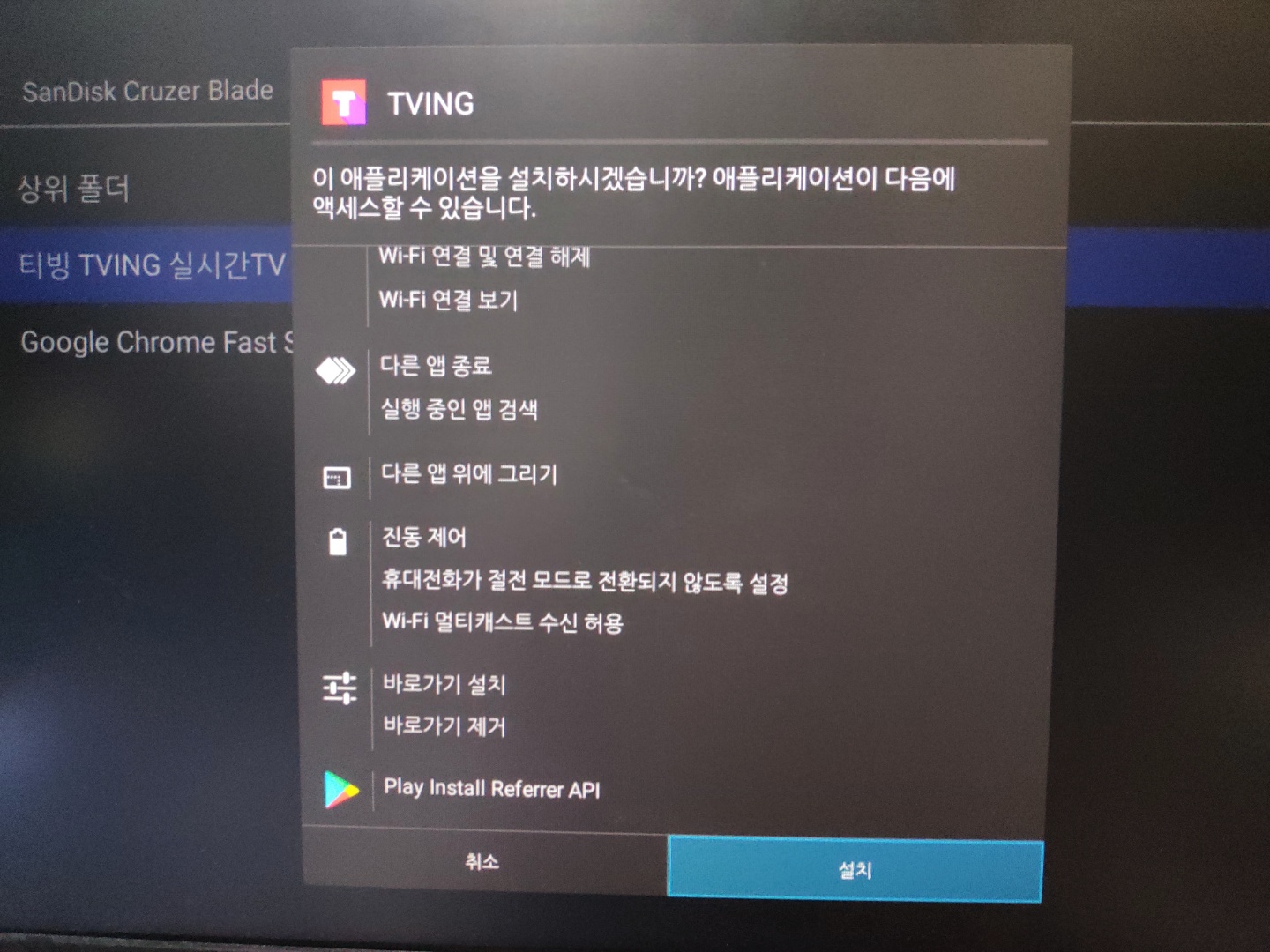 리모컨의 아래 방향을 연타하여 설치버튼에 커서를 보내고 확인을 누르면..