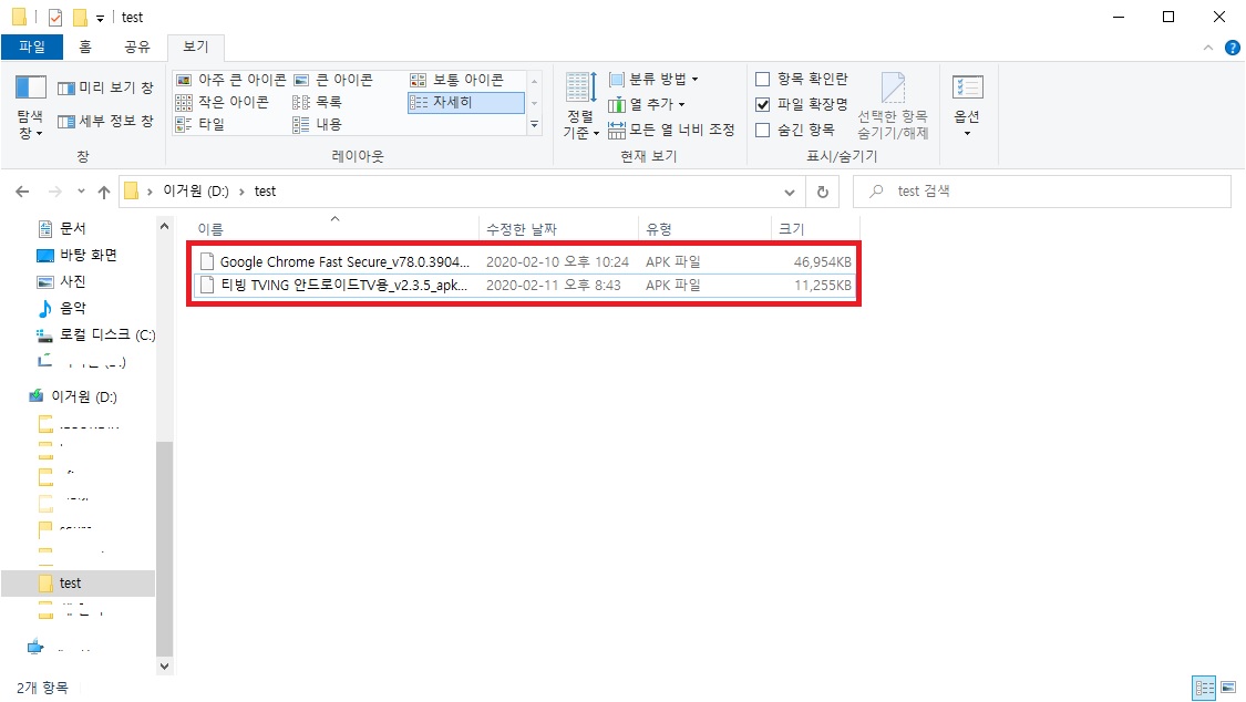 저의 경우, 편의를 위해 test라는 폴더를 만들어서 진행했습니다.