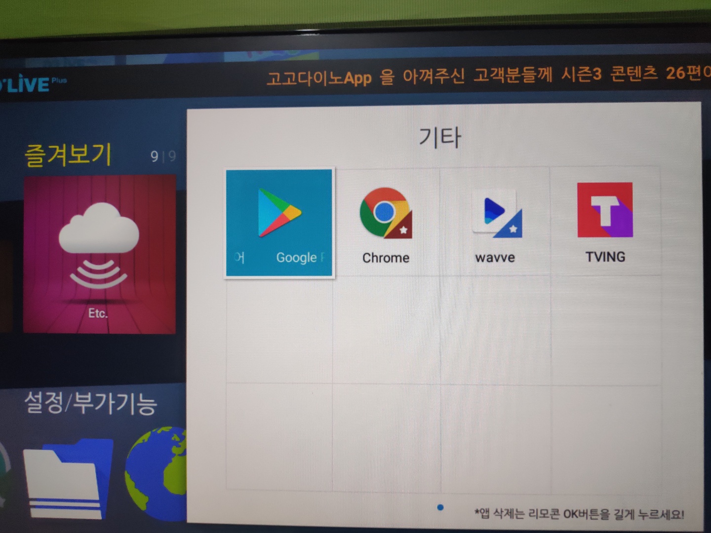 만약 앱을 어디서 찾아야 할지 모르겠다면, '즐겨보기 - Etc'에서 아래와 같이 확인이 가능합니다.