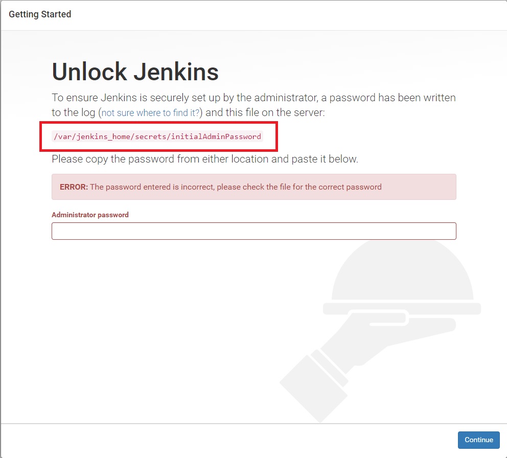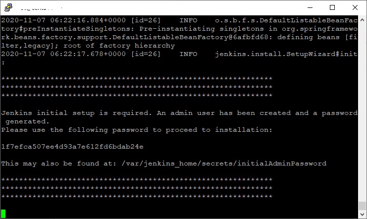만약 initalAdminPassword를 확인하지 못했을 경우, contailner 내부에 접속한 다음, 위의 사진의 빨간 상자의 파일을 열어서 보시면 값을 확인할 수 있습니다.