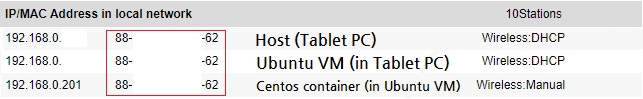 그런데 container와 mac 주소가 동일한 장치가 2개나 더 보입니다.